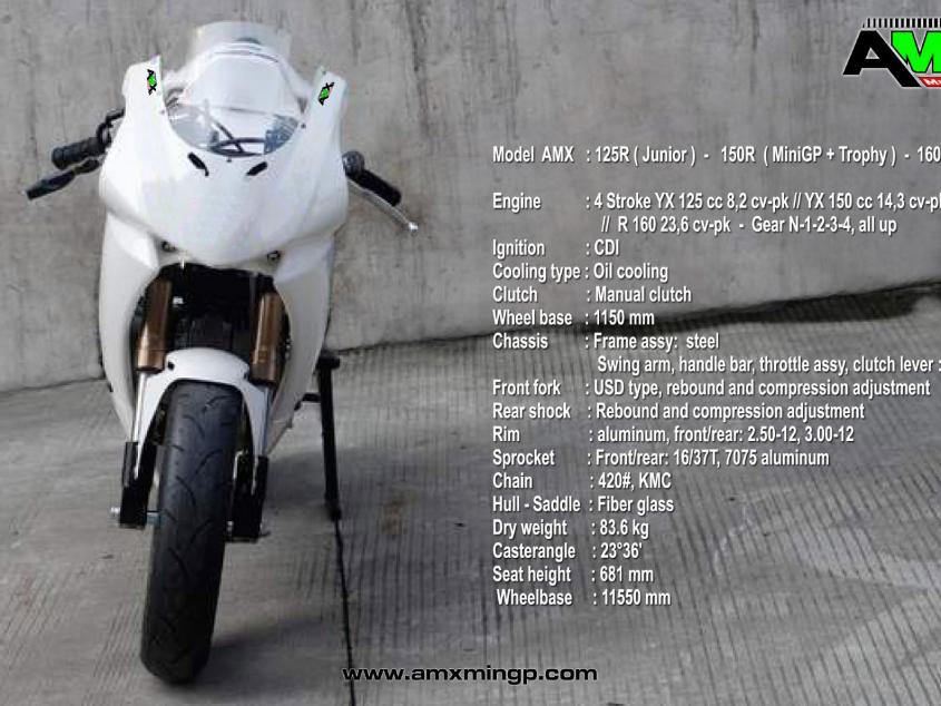 Les dimessions du châssis de la machine sont très bien adaptées au plus jeune pilotes, mais aussi le club des crazy oldes Mans vont trouvés leurs plaisir sur cette proto de course. Retrouvez ci-joint toutes les informations techniques de la AMX et du trophée AMX MINI MOTO GP organisé par le club 2RACE.
