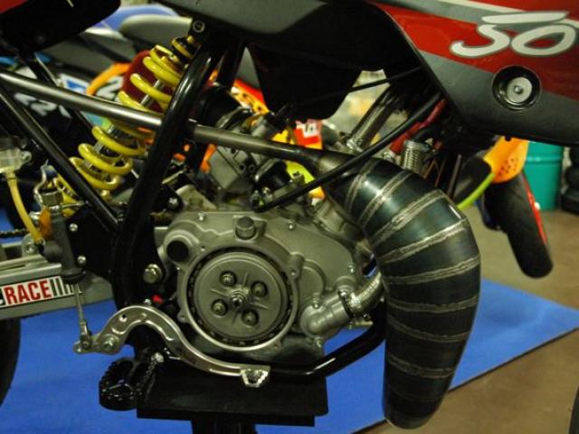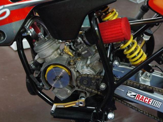Au niveau moteur nous avons choisi le spécialiste Italien de la motorisation Minarelli AM6 "TOP PERFORMANCES" qui sont tétenteur d'un record du monde en vitesse de pointe. Notre configuration dispose beaucoup de couple mais sans de devoir renoncé à une bonne allonge pour justement être utile en compétition sprint et course d'accélération. Grâce au nouveau carter d'embrayage de ATHENA le démontage de l'embrayage est devenu un jeu d'enfant. Plus besoin de démonter tout le carter d'embrayage il suffit simplement de déviser le couvercle du carter d'embrayage.