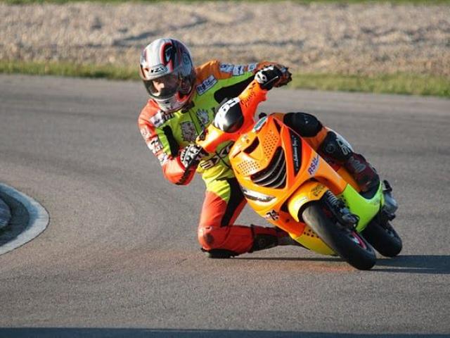 La fourche mono bras du Zip Sp a grâce à son angle de chasse un super avantage pour piloter le Zip sur circuit. Mais au niveau de la suspension et des freins il faut faire des modifications pour sécuriser le pilotage. Comme suspension nous avons choisis l'amortisseur Malossi RS24/10 réglable en détente, compression et pré charge du ressort. Le freinage est garanti par le disque de frein Malossi Woop Disc avec les plaquettes de frein MHR SYNT Brake Pads. La pneumatique est conforme au règlement ISC le pneu Dunlop TT91 en autre pour nous le meilleure pneu pour scooter à usage sportif.
