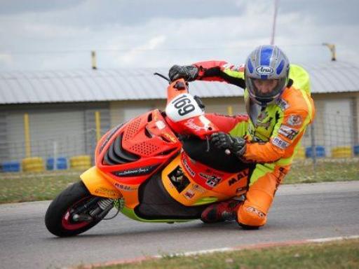 Voici notre Scooter de compétition conforme au règlement Malossi ISC même en couleurs officielles ISC! Comme base nous avons utilisé un Piaggio Zip SP II de stock d'une valeur à neuf d'environ 1900€. Comparé à des autres scooter sportifs comme p.ex Aerox, Speedfight ou F12 il est vraiment financièrement très intéressant! Mais ses réels avantages sont ses caractéristiques techniques! Grâce à son châssis de base très rigide avec un poids à vide de 80 kg et d à son empattement très court de 1215 mm font de lui le scooter le plus maniable.