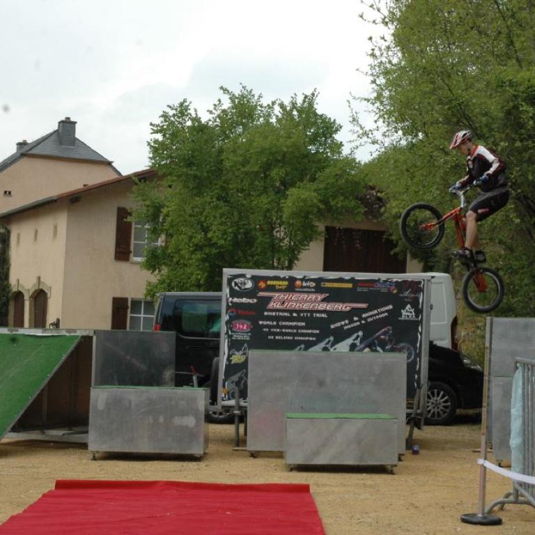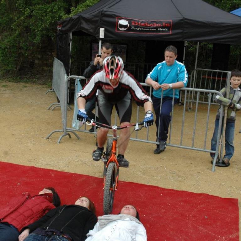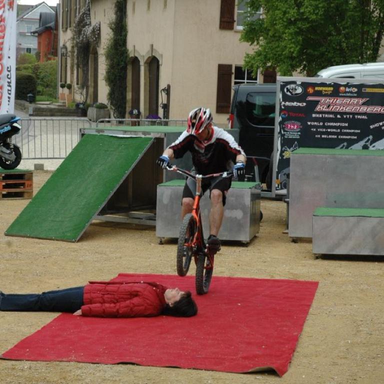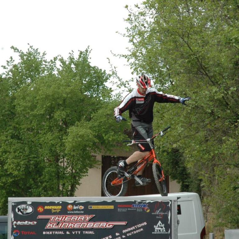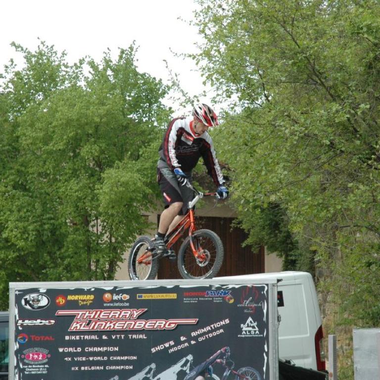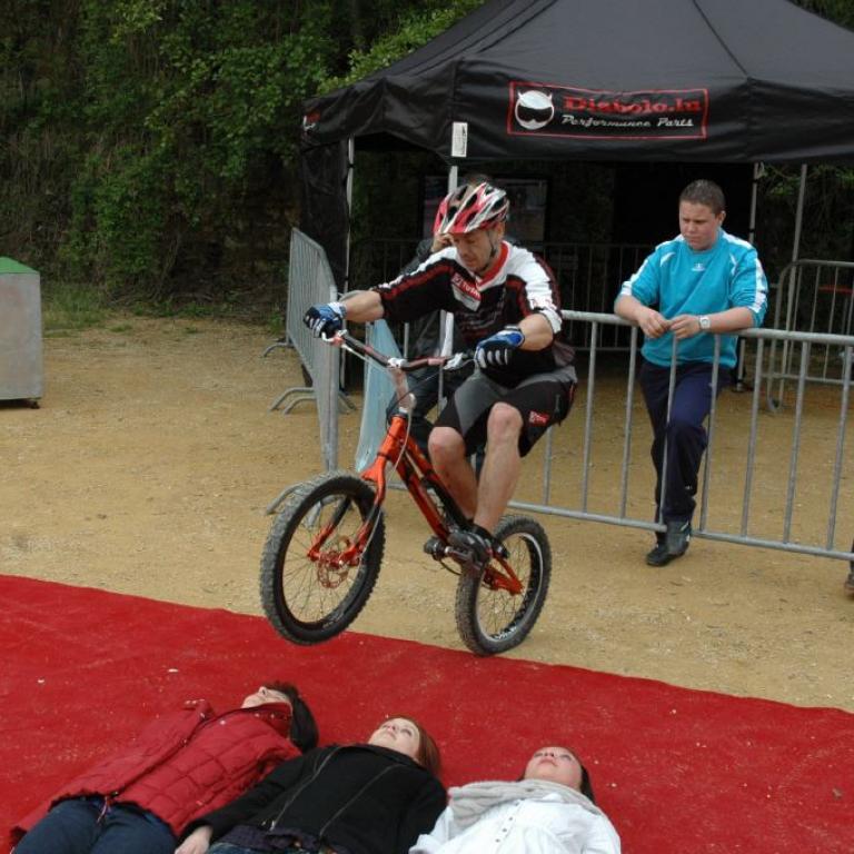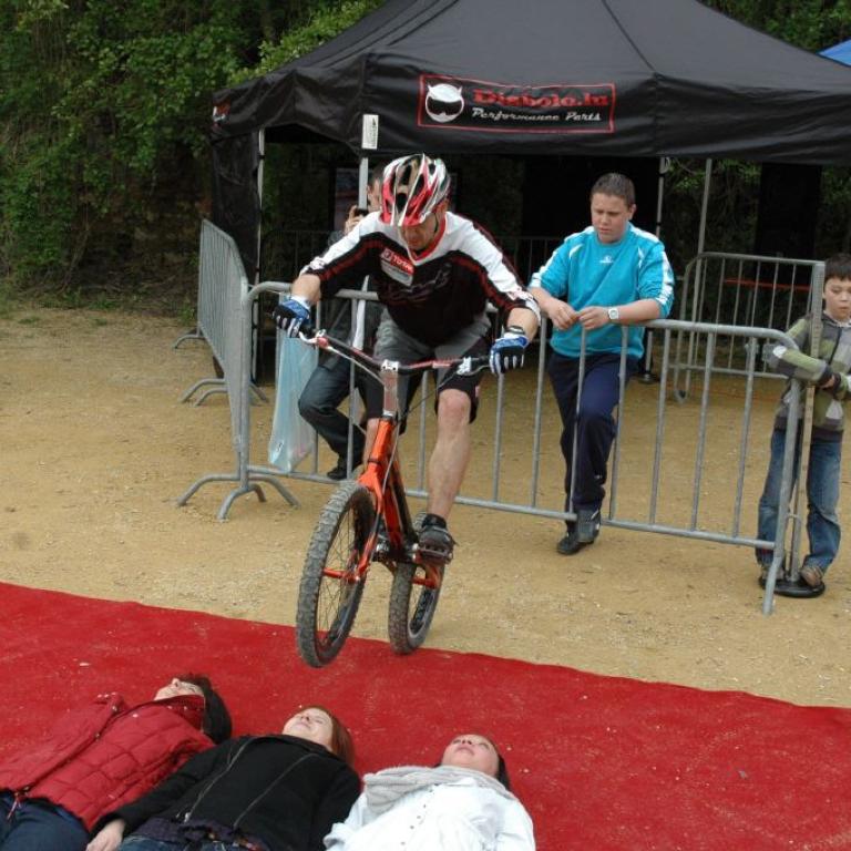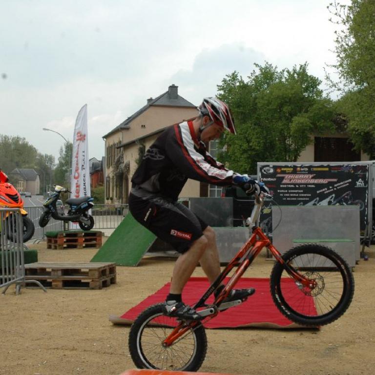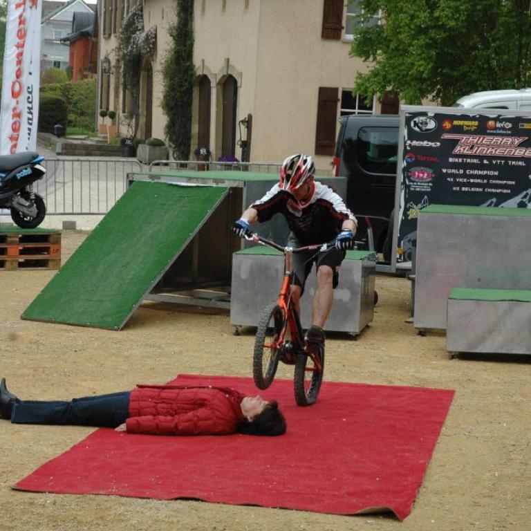 Comme toutes les années pour le 08 mai diabolo.lu a organisé une journée spéciale pour nos clients et amis. Cette année nous avons eu le plaisir d'accueillir le champion du monde de la discipline Trial VTT Thierry KLINKENBERG. Au cours de la journée Thierry avec fait plusieurs spectacles pour vous et a même essayé de battre son propre record pour vous. À l'arrêt il a sauté 121cm en hauteur! Pour tous ceux qui n'ont pas peu profité de l'occasion Lee a mémorisé quelques beaux moments sur photo pour vous.