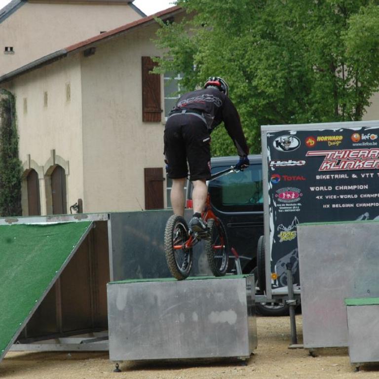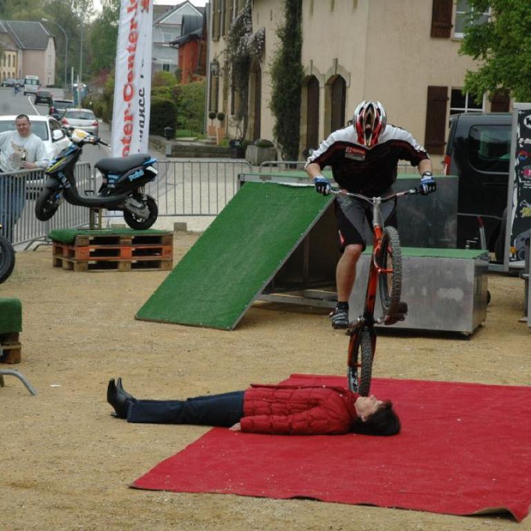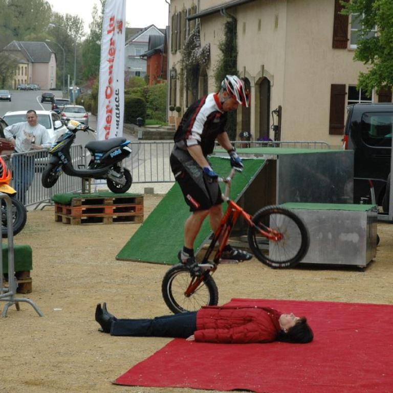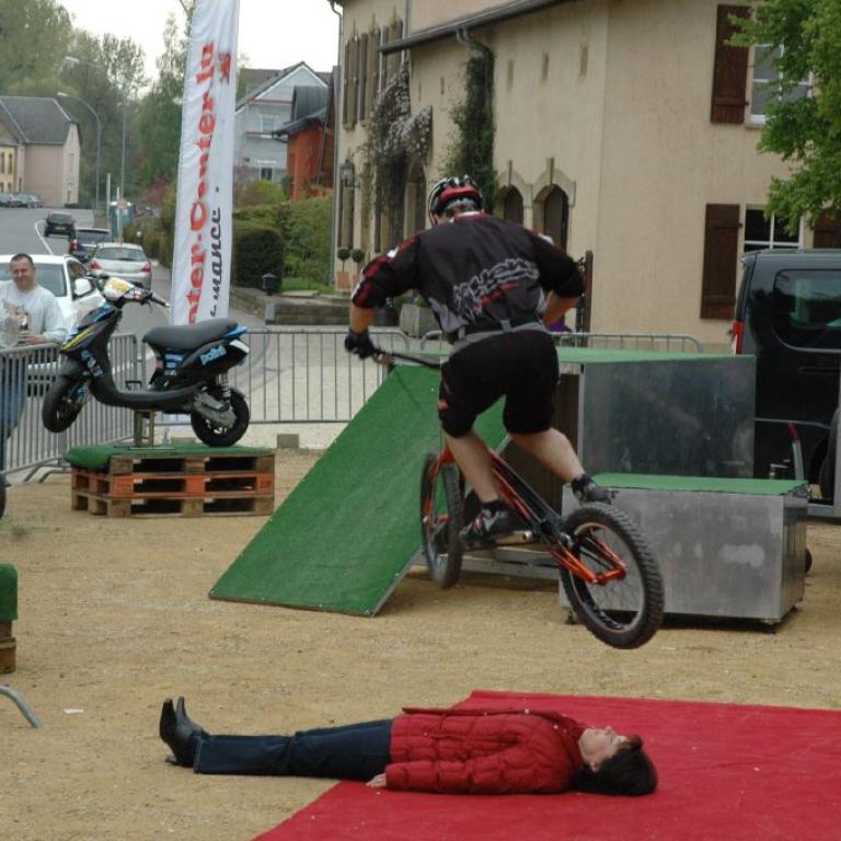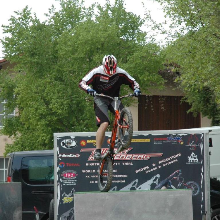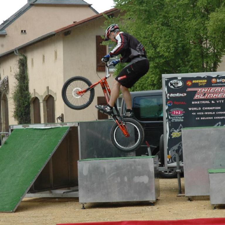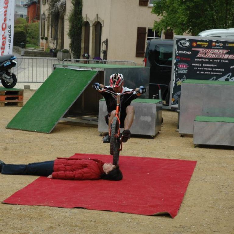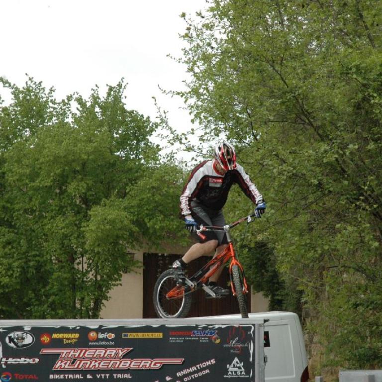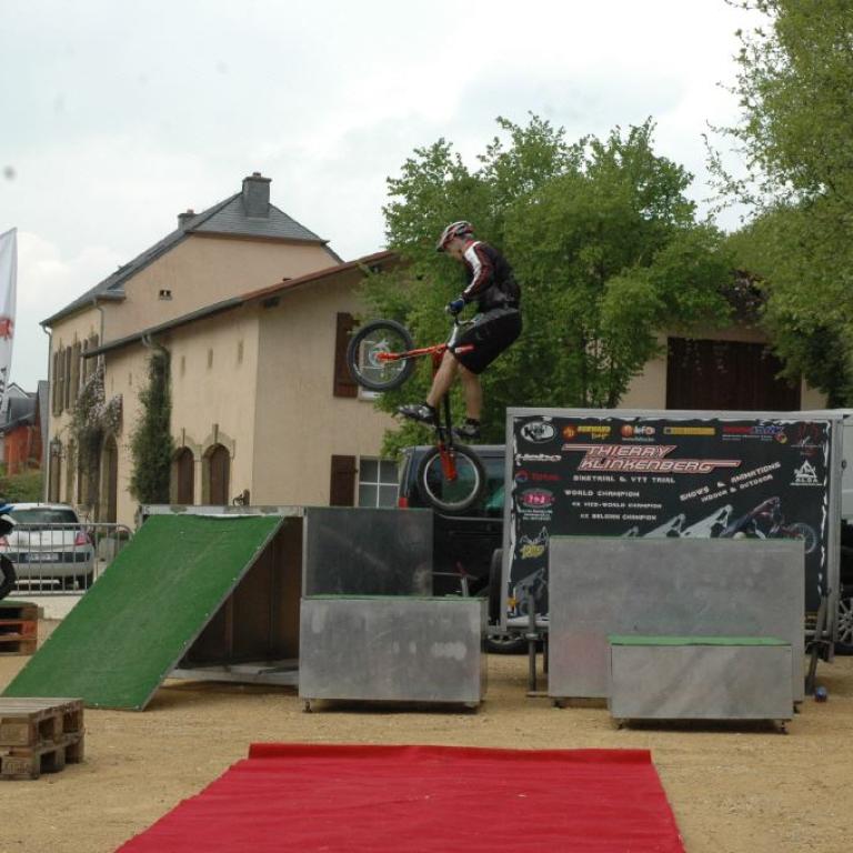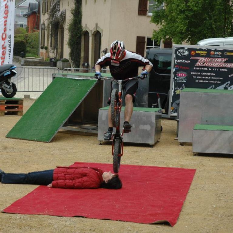 Comme toutes les années pour le 08 mai diabolo.lu a organisé une journée spéciale pour nos clients et amis. Cette année nous avons eu le plaisir d'accueillir le champion du monde de la discipline Trial VTT Thierry KLINKENBERG. Au cours de la journée Thierry avec fait plusieurs spectacles pour vous et a même essayé de battre son propre record pour vous. À l'arrêt il a sauté 121cm en hauteur! Pour tous ceux qui n'ont pas peu profité de l'occasion Lee a mémorisé quelques beaux moments sur photo pour vous.