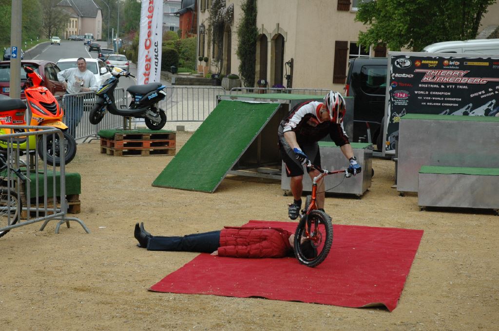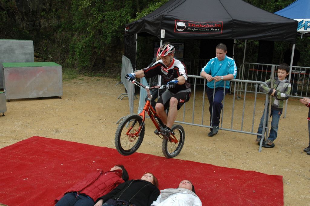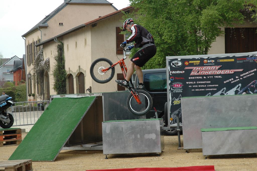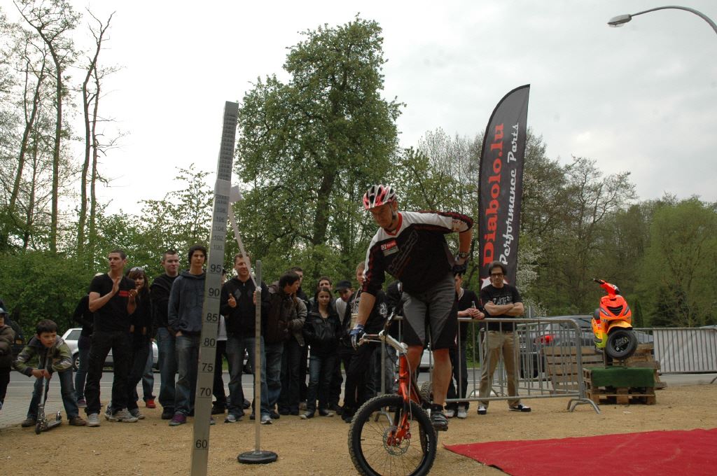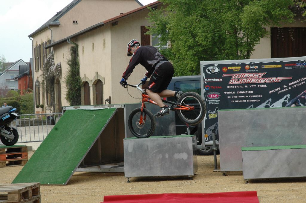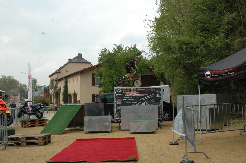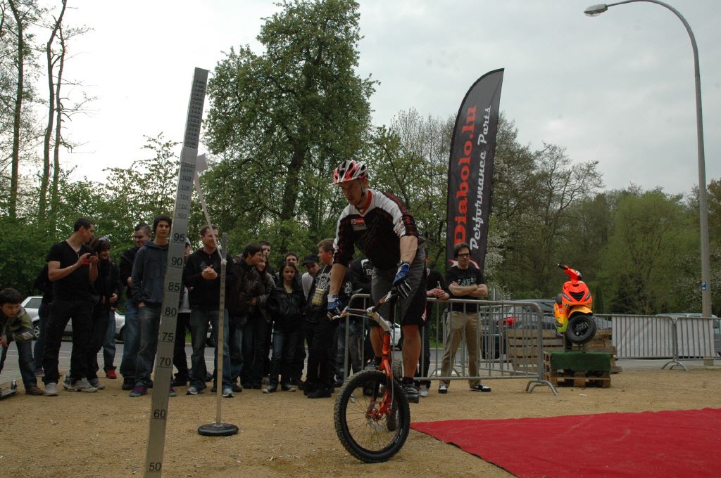 Comme toutes les années pour le 08 mai diabolo.lu a organisé une journée spéciale pour nos clients et amis. Cette année nous avons eu le plaisir d'accueillir le champion du monde de la discipline Trial VTT Thierry KLINKENBERG. Au cours de la journée Thierry avec fait plusieurs spectacles pour vous et a même essayé de battre son propre record pour vous. À l'arrêt il a sauté 121cm en hauteur! Pour tous ceux qui n'ont pas peu profité de l'occasion Lee a mémorisé quelques beaux moments sur photo pour vous.