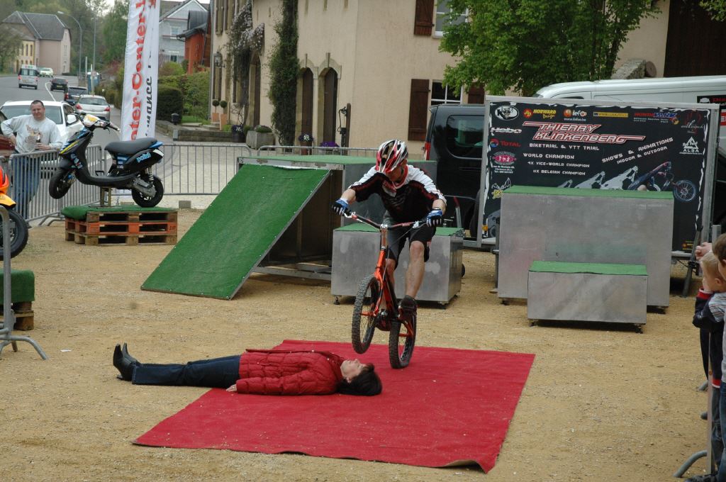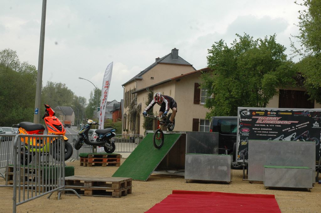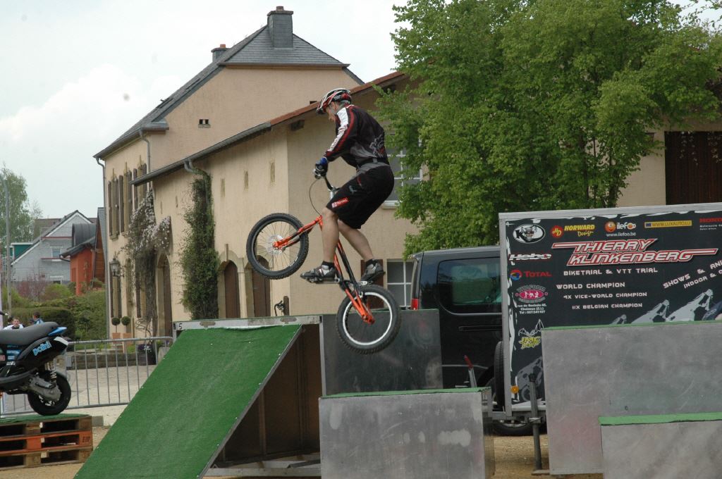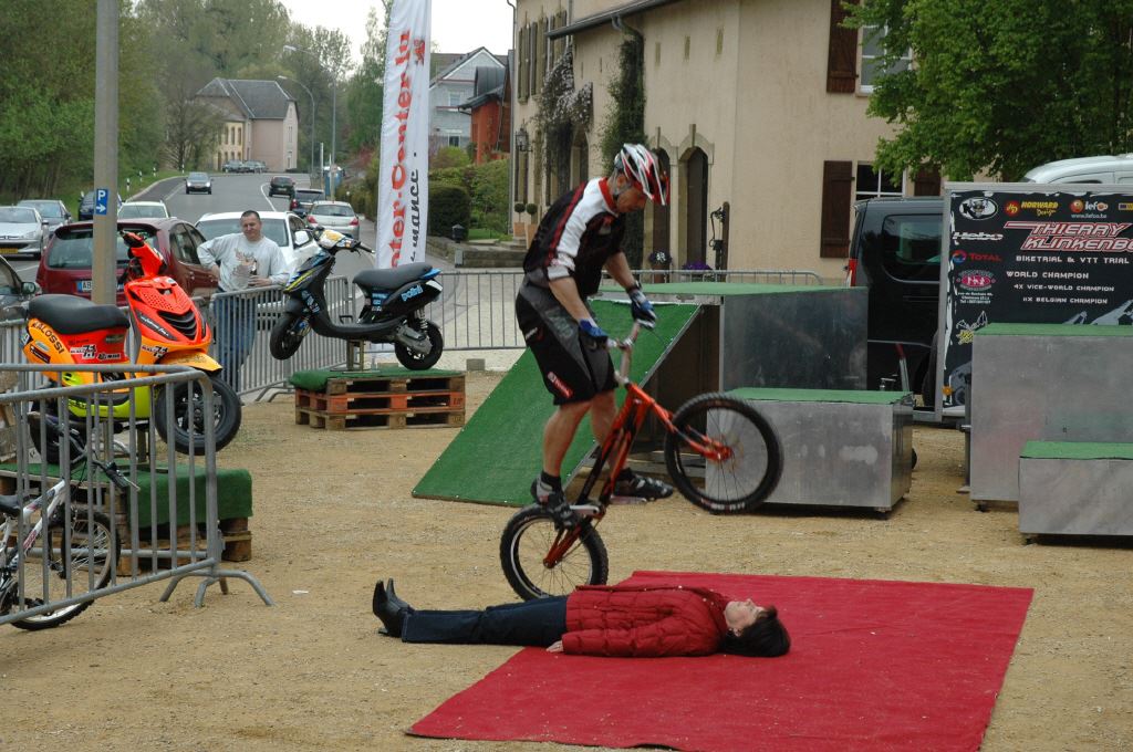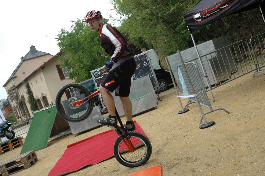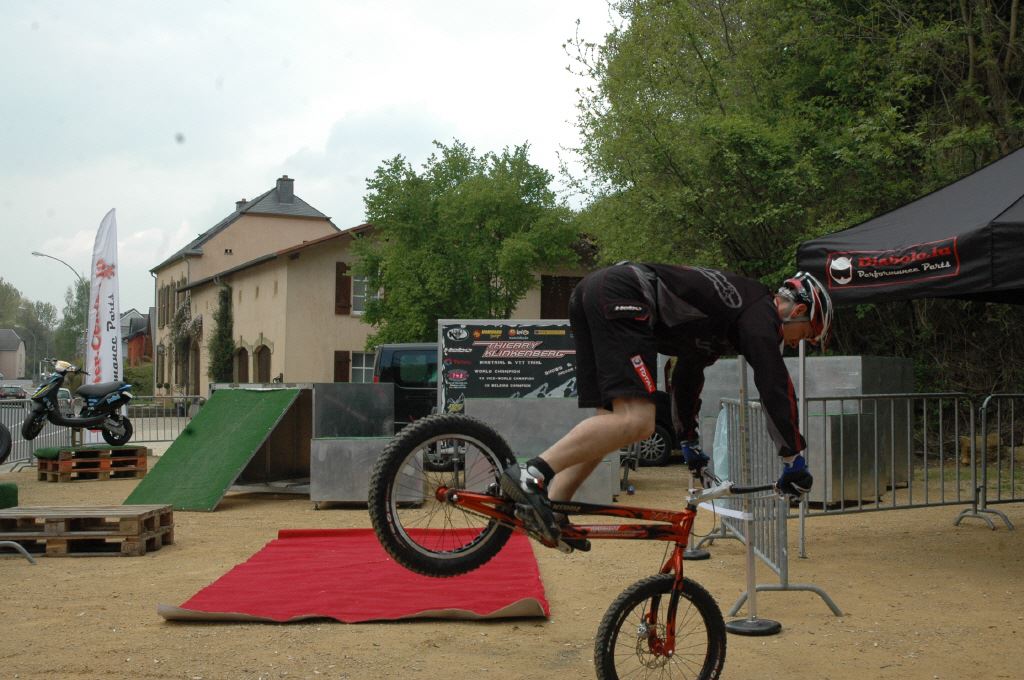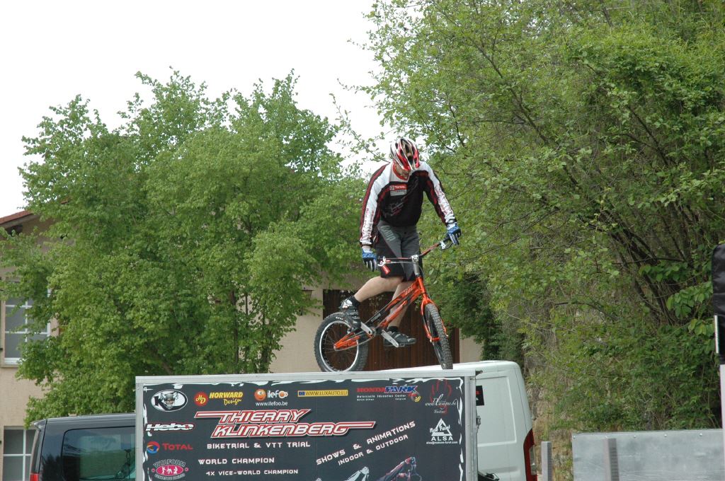 Comme toutes les années pour le 08 mai diabolo.lu a organisé une journée spéciale pour nos clients et amis. Cette année nous avons eu le plaisir d'accueillir le champion du monde de la discipline Trial VTT Thierry KLINKENBERG. Au cours de la journée Thierry avec fait plusieurs spectacles pour vous et a même essayé de battre son propre record pour vous. À l'arrêt il a sauté 121cm en hauteur! Pour tous ceux qui n'ont pas peu profité de l'occasion Lee a mémorisé quelques beaux moments sur photo pour vous.