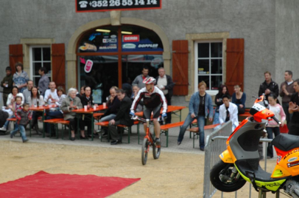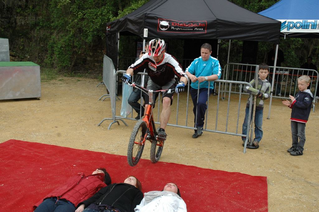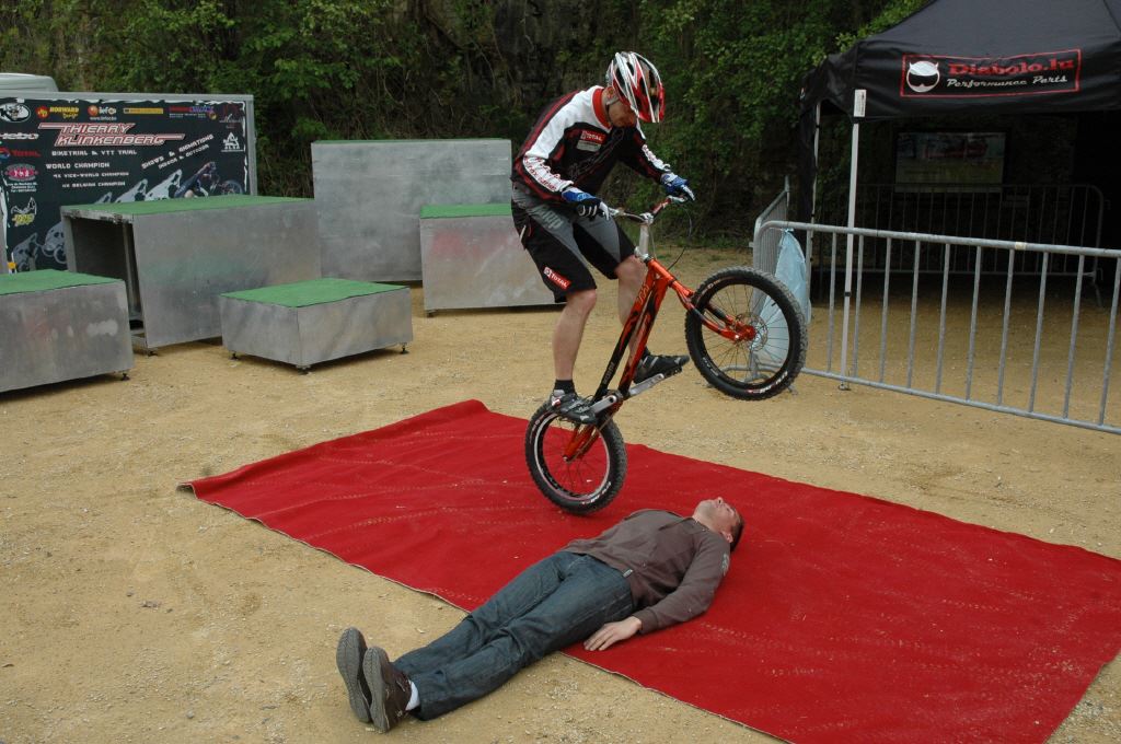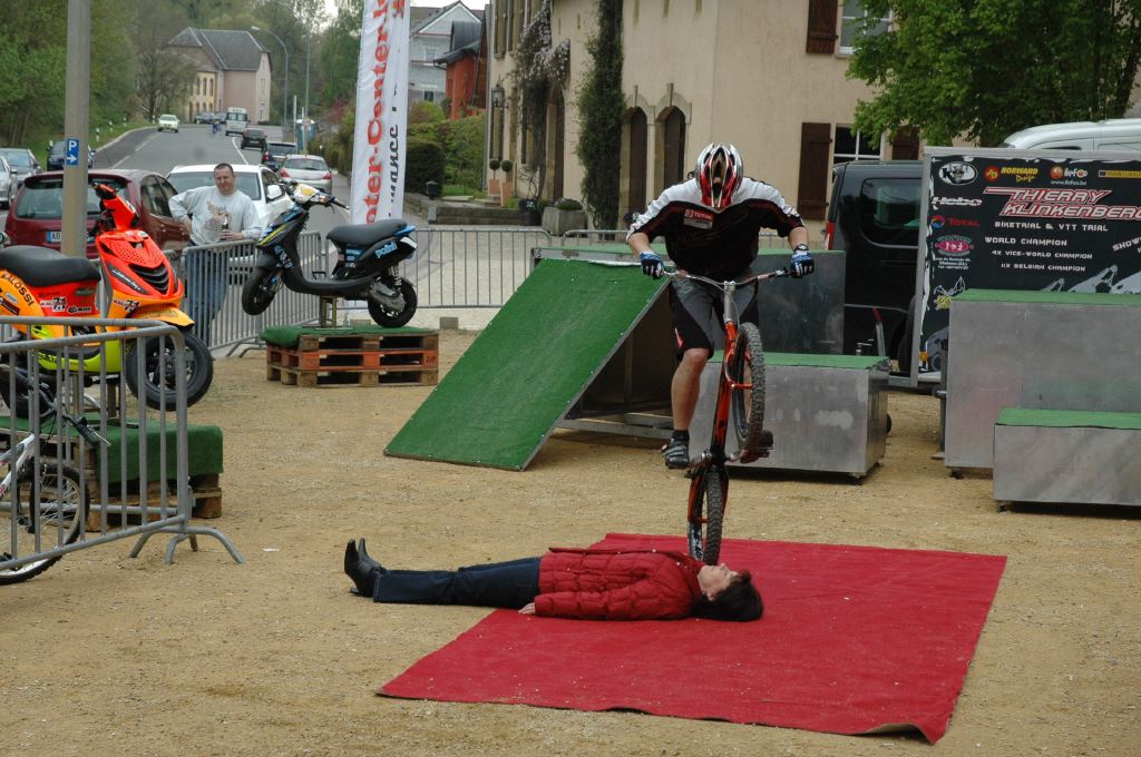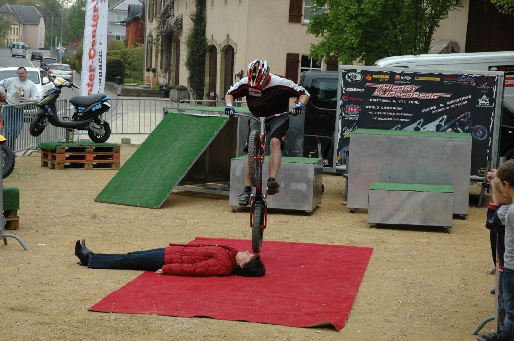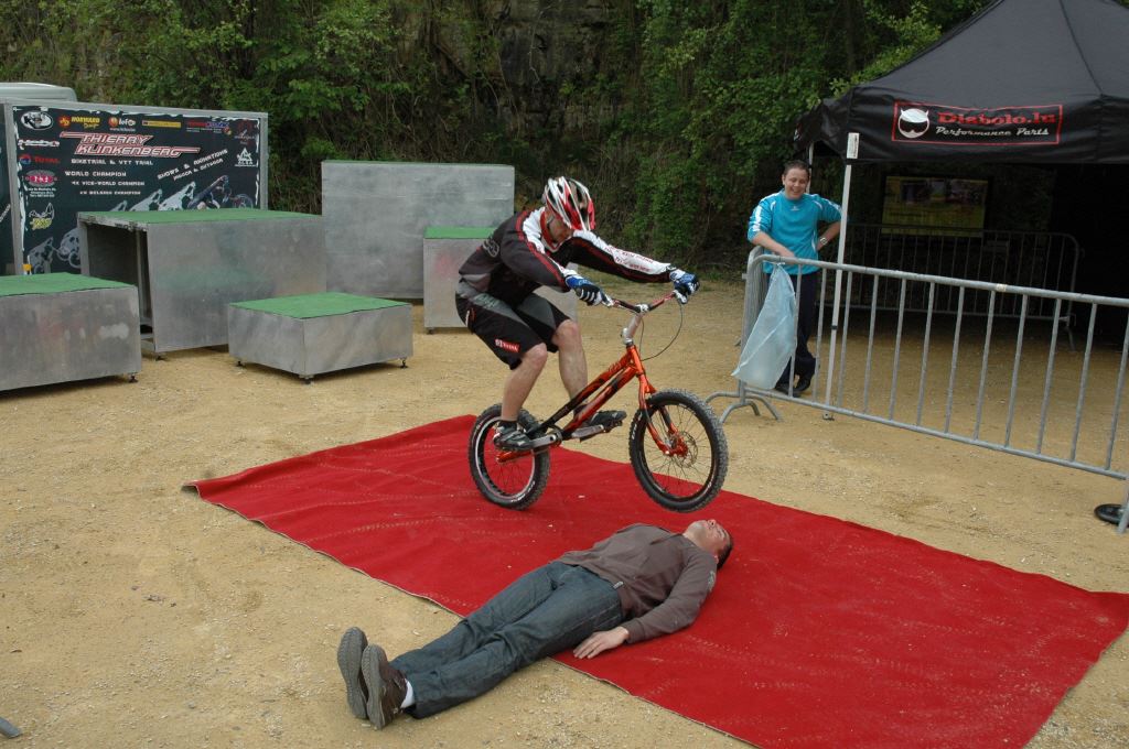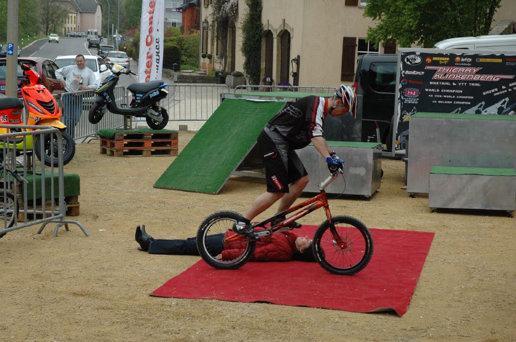 Comme toutes les années pour le 08 mai diabolo.lu a organisé une journée spéciale pour nos clients et amis. Cette année nous avons eu le plaisir d'accueillir le champion du monde de la discipline Trial VTT Thierry KLINKENBERG. Au cours de la journée Thierry avec fait plusieurs spectacles pour vous et a même essayé de battre son propre record pour vous. À l'arrêt il a sauté 121cm en hauteur! Pour tous ceux qui n'ont pas peu profité de l'occasion Lee a mémorisé quelques beaux moments sur photo pour vous.