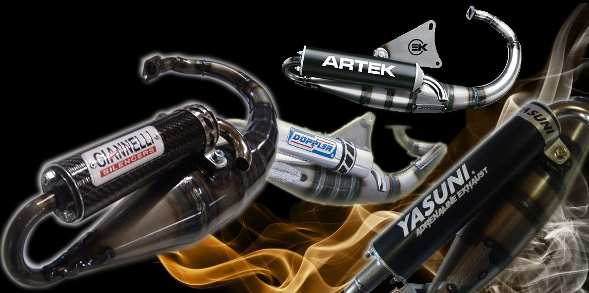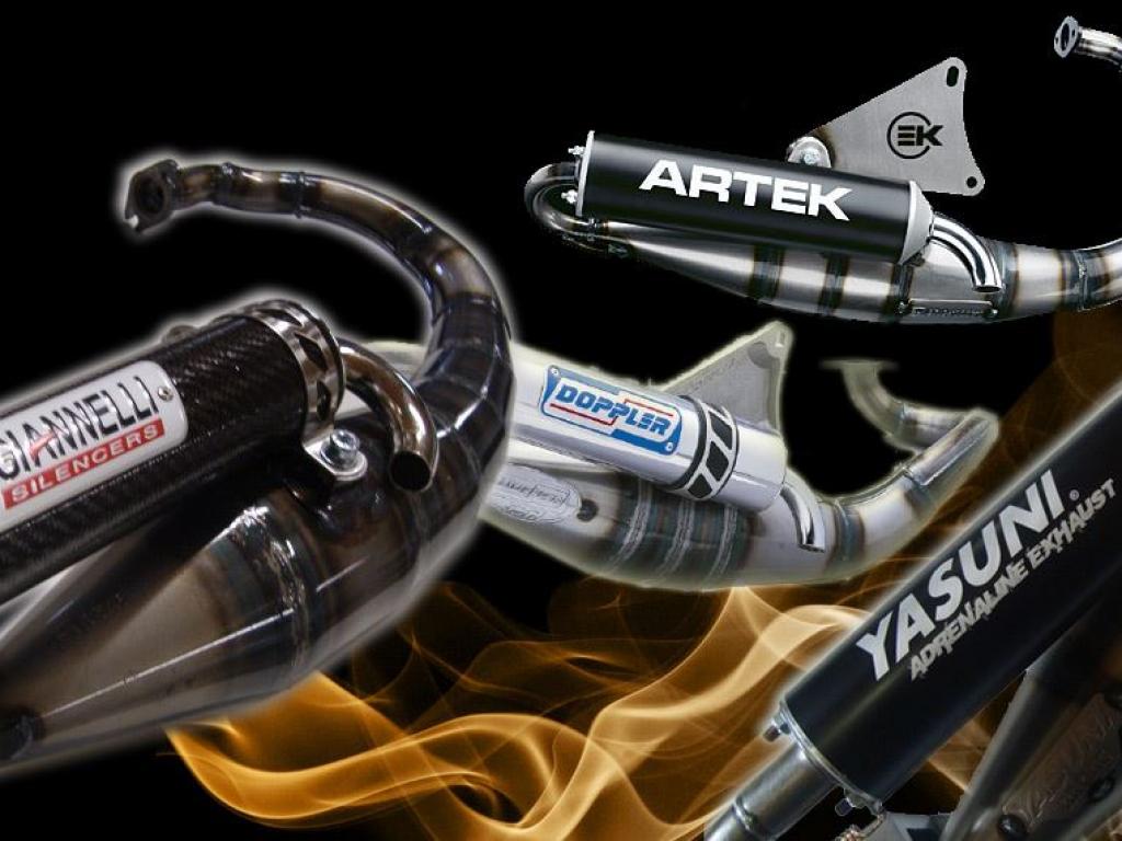 Le pot d"échappement a une grande influence sur le développement de la puissance du moteur 2 temps scooter ou mécaboite et appartient aux méthodes faciles d"augmenter éfficacement les performances de sa machine, sans se ruiner. Afin d"atteindre un développement de puissance idéal, les différents components d"une configuration moteur doivent harmoniser entre-eux.. Le réglage du variateur avec les galets correspondants, les ressorts correcteur et d"embrayages bien choisi et le réglage du carbu est recommandé pour améliorer l"accélération et la couple du moteur.