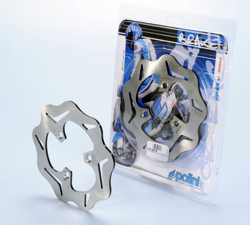 Polini Motori a réalisé en collaboration avec Braking un disque de frein avec profil Wave, spécifique pour scooters 50cc. Il a été testé et développé par les pilotes officiels du team Polini Scooter, Matteo Tiraferri et Filippo Corsi. Même s"il est moins onéreux qu"un disque flottant, le nouveau disque Polini assure une plus grande vivacité de réaction et donc une plus grande efficacité lors de chaque freinage. Plus d'informations