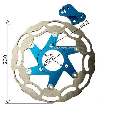 Doppler livre un kit de frein unique au marché. Ce kit se compose d'une durite d'aviation, un disque de frein flottant et en plus en taille Oversize avec un diamétre de 230mm. Freiner comme les pro!
